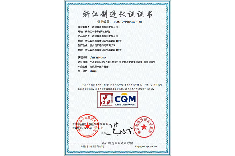 Сертификат сертификации производства провинции Чжэцзян