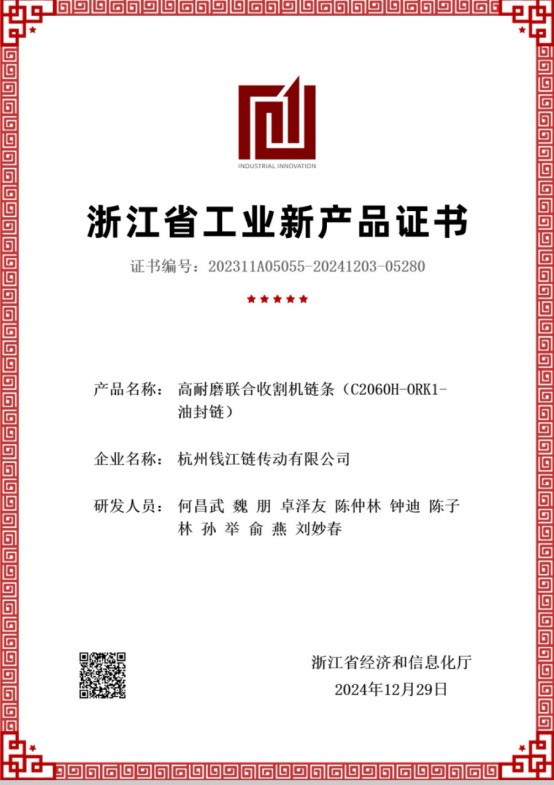 Цепь высокой износостойкости для сельскохозяйственной уборочной техники прошла сертификацию на провинциальном уровне