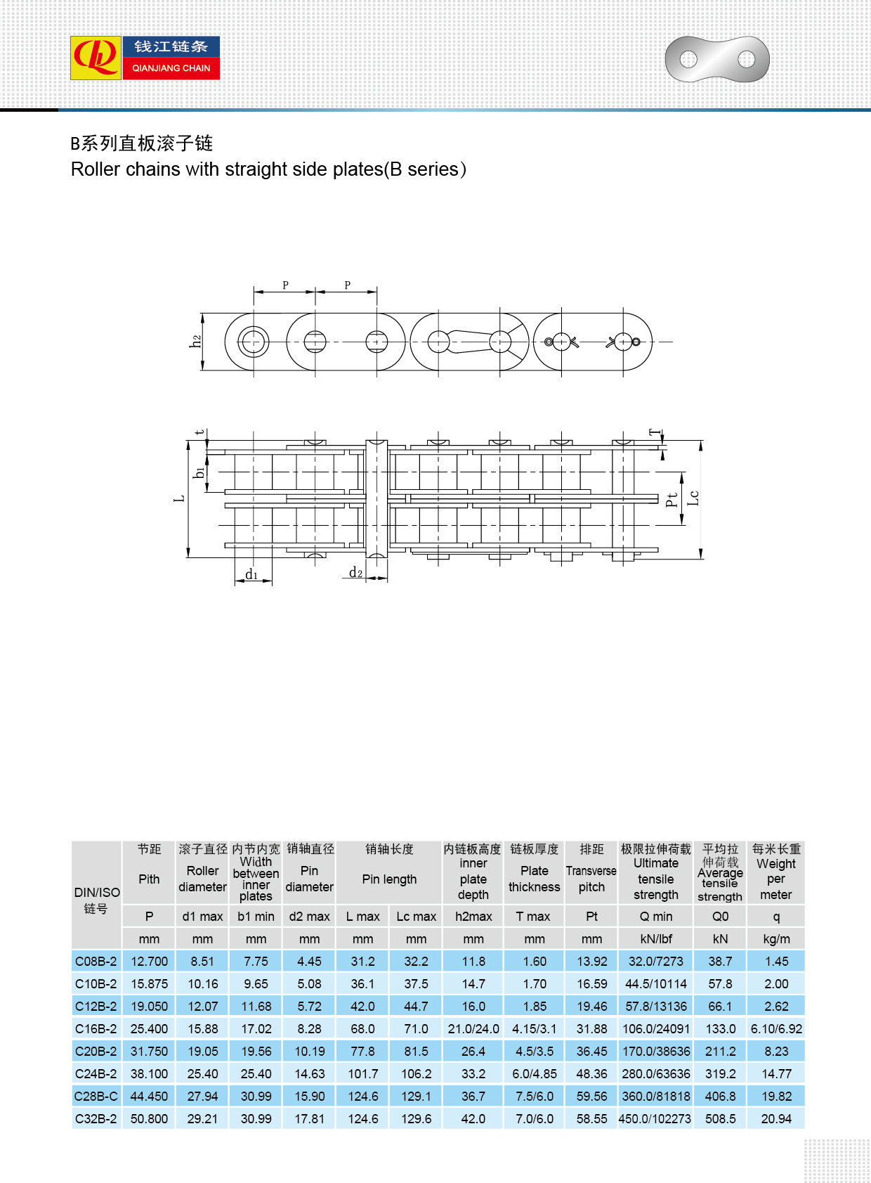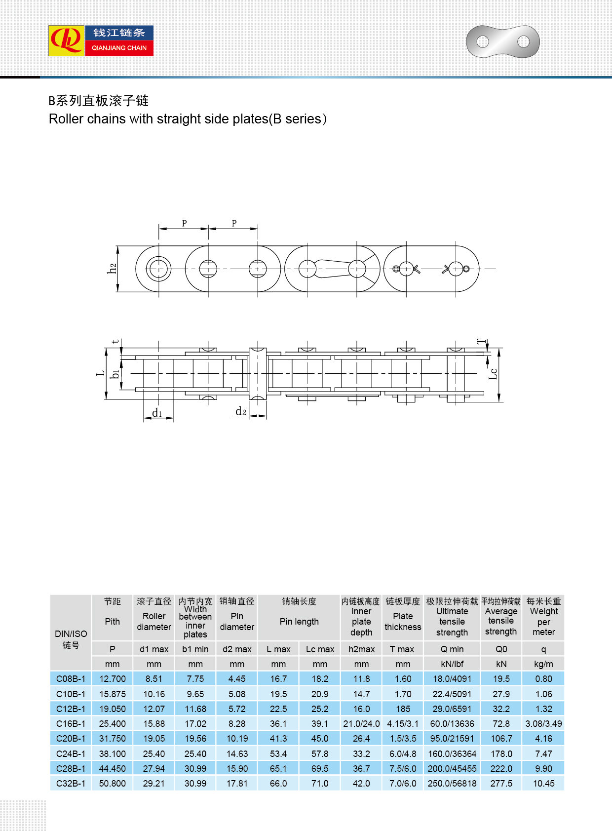 Роликовые цепи с прямой боковой пластиной (серия B)