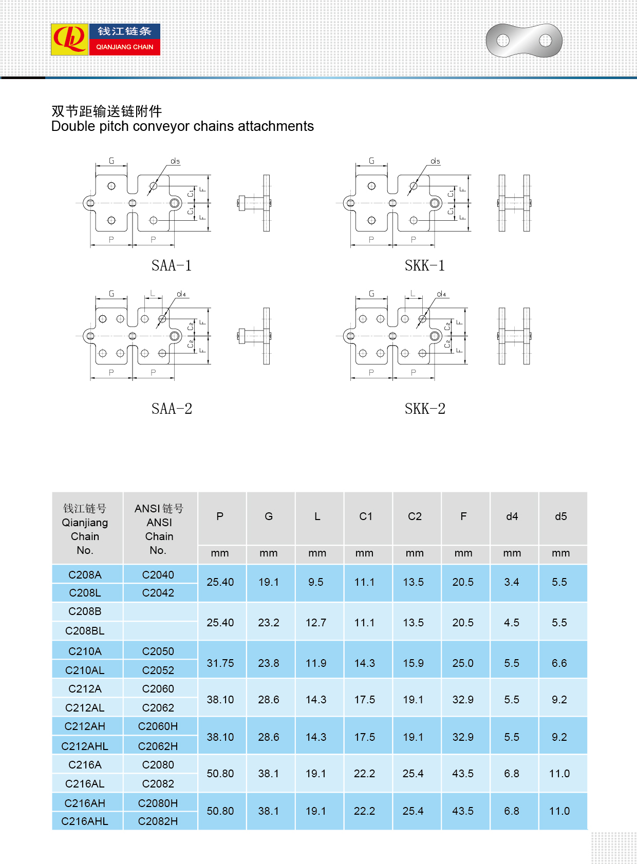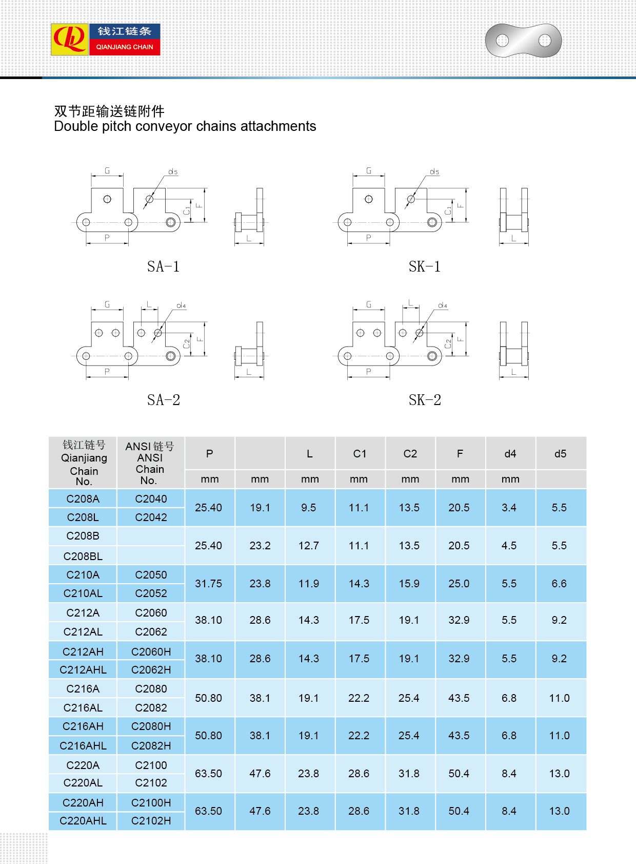 Двухшаговые конвейерные цепи идеально подходят для таких отраслей, как упаковка, автомобилестроение, пищевая промышленность и логистика. Они превосходно подходят для эффективного перемещения объемных или деликатных материалов. Их адаптируемость позволяет использовать их для сборочных линий, сортировочных систем и распределительных центров. Благодаря низким требованиям к техническому обслуживанию и износостойкости они обеспечивают бесперебойную производительность, сокращая время простоев и эксплуатационные расходы. Выбирая двухшаговые конвейерные цепи с навесным оборудованием, предприятия получают выгоду от повышенной гибкости, повышения эффективности рабочего процесса и долгосрочной надежности — все это критически важные факторы в сегодняшней быстро меняющейся промышленной среде. Независимо от того, модернизируете ли вы существующее оборудование или разрабатываете новые системы, это инновационное решение обеспечивает непревзойденную производительность и ценность.