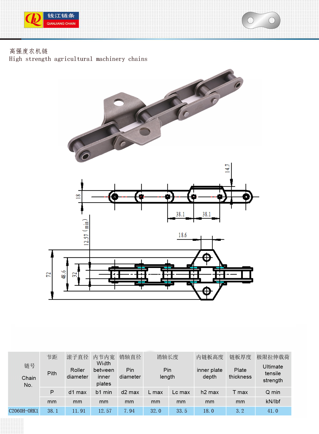 Высокопрочные цепи для сельскохозяйственной техники обладают износостойкостью, прочностью и сроком службы, подходят для различных сложных условий работы. Используются высококачественные легированные стали, а прочность на разрыв и усталостная долговечность цепи повышаются за счет процессов термообработки (таких как цементация, отпуск и закалка). Контактная поверхность цепи специально закалена, имеет гладкую поверхность и хорошую износостойкость, подходит для высокочастотной работы. Технология прецизионной обработки гарантирует, что звенья цепи точно совпадают, работают плавно и снижают шум и вибрацию. Различные шаги, прочность и формы (например, роликовые цепи, цепи с вспомогательными приспособлениями, цепи с изогнутыми пластинами и т. д.) могут быть адаптированы в соответствии с потребностями в поддержке различных сельскохозяйственных машин и оборудования. Используется в трансмиссионном механизме транспортировки, резки и обмолота пшеницы, риса, кукурузоуборочных комбайнов и т. д. Для привода высевающего диска и вала удобрений требуется, чтобы цепь работала точно и долговечно. Применяется на ленточных сельскохозяйственных конвейерах, подъемниках материалов и т. д. для выполнения задач высокочастотной транспортировки.