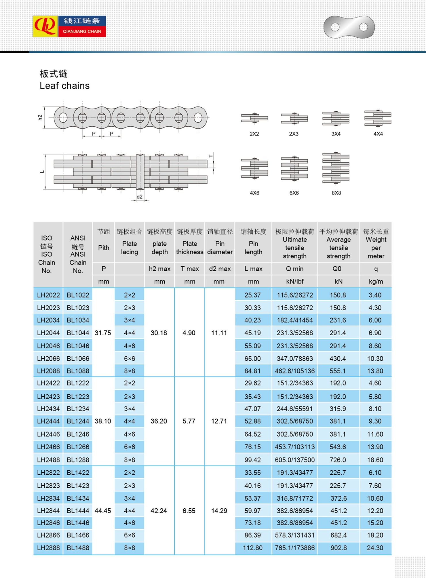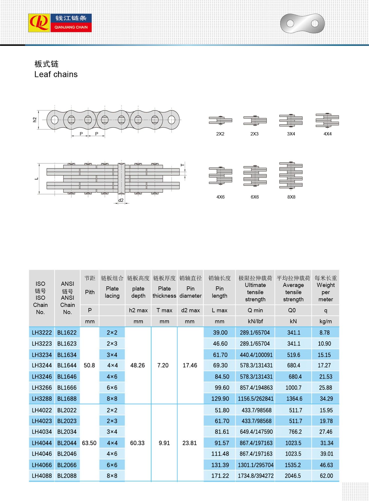 LH (серия BL) износостойкие и прочные пластинчатые цепи
